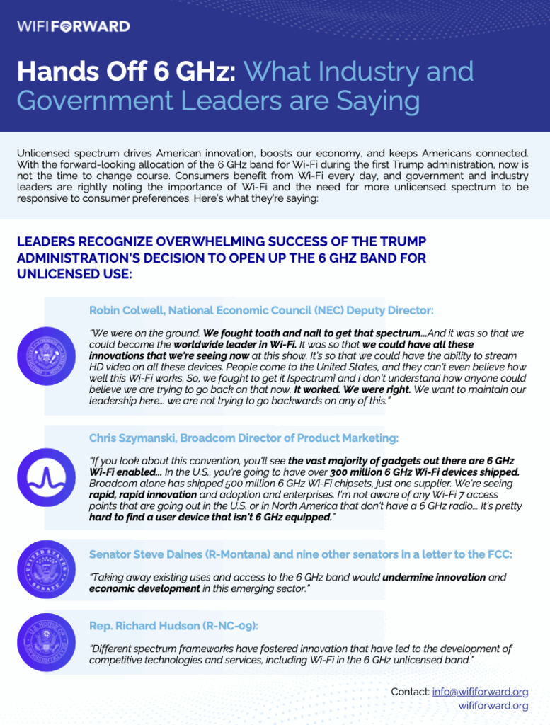 One-Pager: Hands Off 6 GHz: What Industry and Government Leaders are Saying