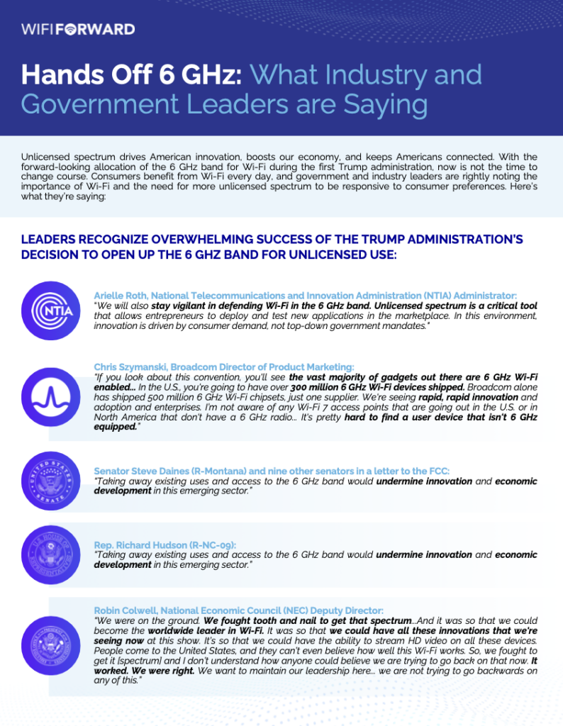 One-Pager: Hands Off 6 GHz: What Industry and Government Leaders are Saying
